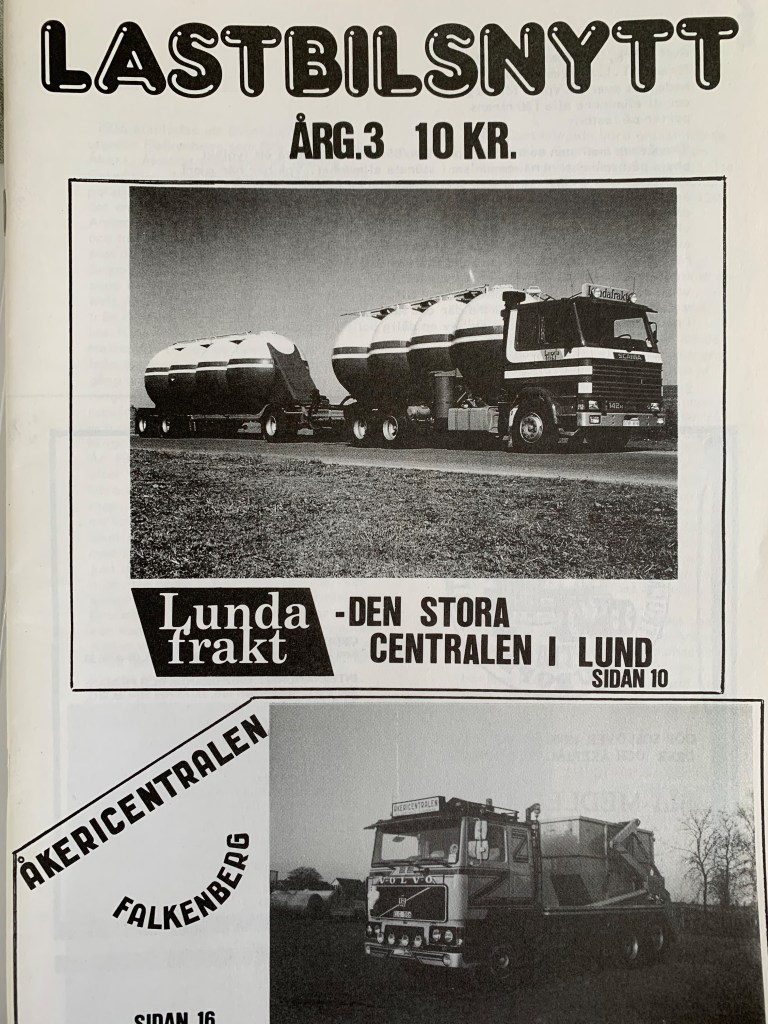 I början på 80-talet tog jag och mina kompisar Ola Larsson och Anders Karlsson beslutet att göra en tidning som vi kallade Lastbilsnytt. Den innehöll intressanta artiklar från information om olika åkerier till nyheter inom utveckling av produkter för lastbilar som tex Volvos nya axel-link system.